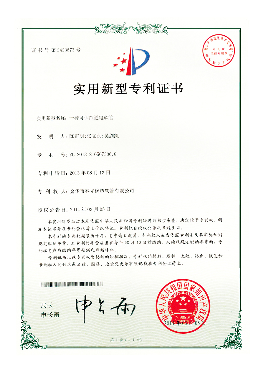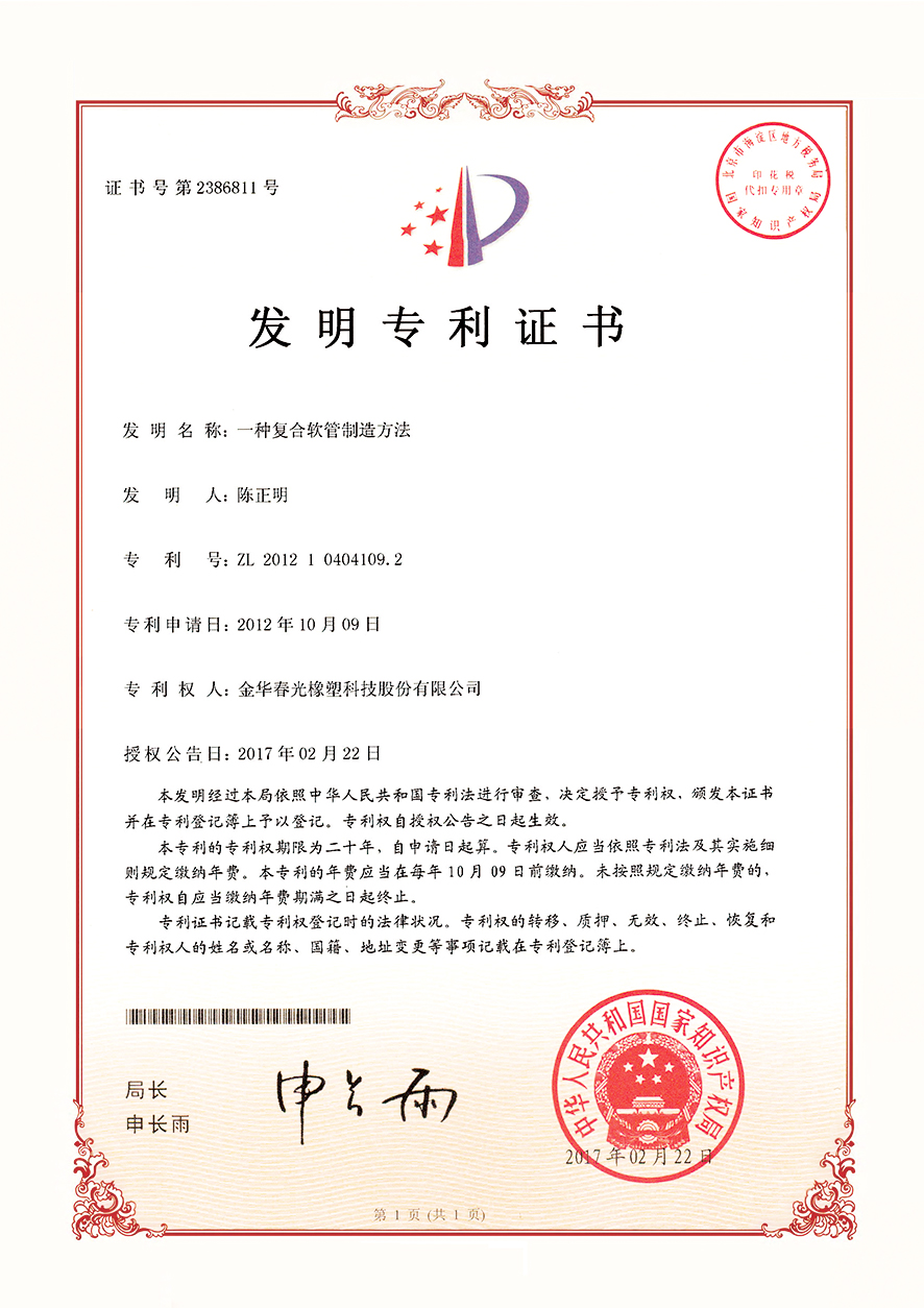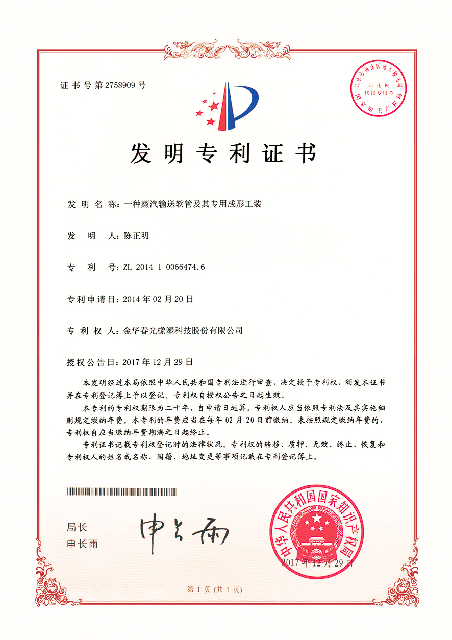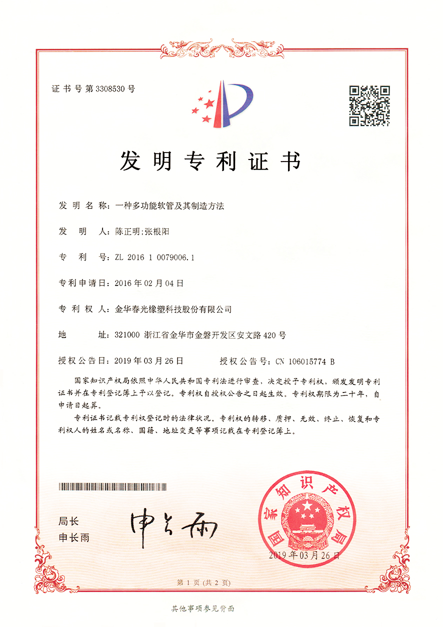 以技术创新驱动发展,夯实企业核心竞争力,一直是春光多年来坚持的原则。通过多年的持续技术创新,已经逐步研发出中央吸尘器软管、吹塑软管、缠绕软管、挤出软管、吸塑软管等十余个系列数百个产品,自主研发的 1 : 8超大伸缩比软管,技术指标达到国际领先水平。设备上实现了多项核心设备完全自主制造,其中,自主研发的一体式挤出管成型设备、伸缩管自动旋转喷码设备、多功能导电复合软管生产设备、高强度中央吸尘软管成型设备等,填补了行业空白。现已获得技术发明专利32项,省级创新成果57项,各类实用新型和外观专利175项。