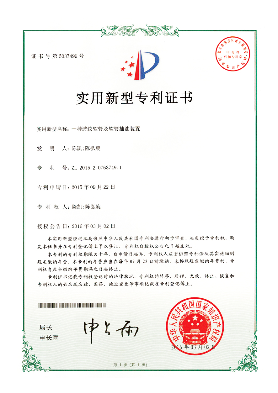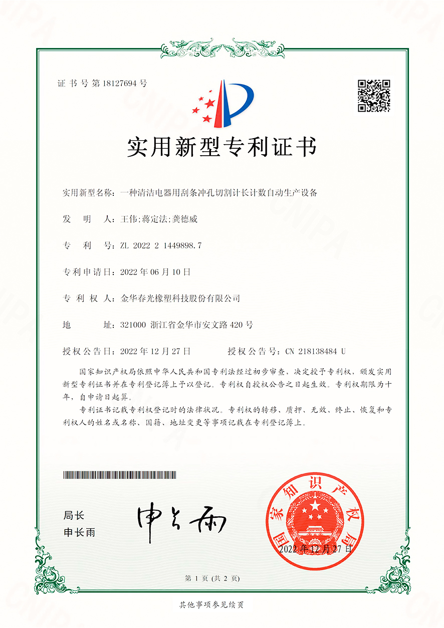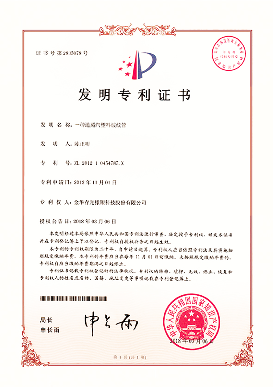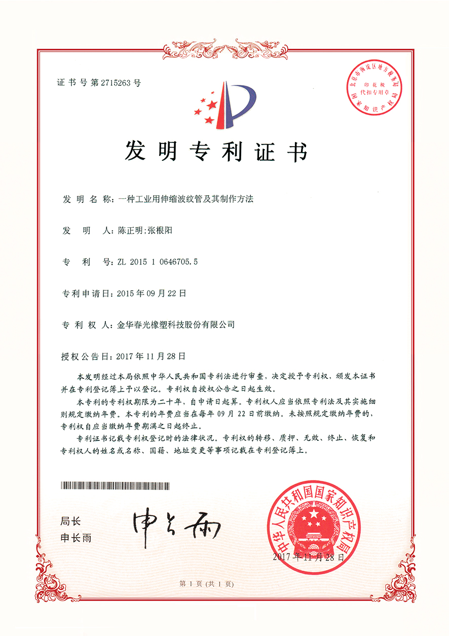 以技术创新驱动发展,夯实企业核心竞争力,一直是春光多年来坚持的原则。通过多年的持续技术创新,已经逐步研发出中央吸尘器软管、吹塑软管、缠绕软管、挤出软管、吸塑软管等十余个系列数百个产品,自主研发的 1 : 8超大伸缩比软管,技术指标达到国际领先水平。设备上实现了多项核心设备完全自主制造,其中,自主研发的一体式挤出管成型设备、伸缩管自动旋转喷码设备、多功能导电复合软管生产设备、高强度中央吸尘软管成型设备等,填补了行业空白。现已获得技术发明专利32项,省级创新成果57项,各类实用新型和外观专利175项。